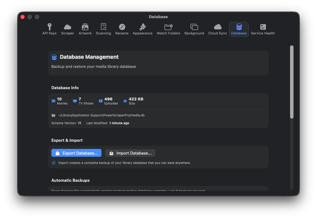 Power Scraper Pro pulls metadata from TMDB (The Movie Database) for movies, TVDB for TV shows, and Fanart.TV for high-resolution artwork. These are the same sources used by Kodi, Plex, and other major media centers.